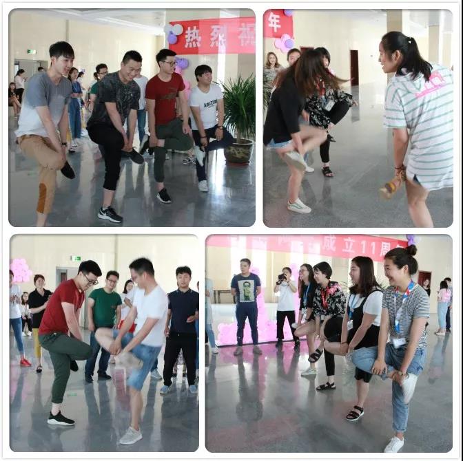 由在青峰11年的老員工給在青峰10年的員工送上生日蛋糕