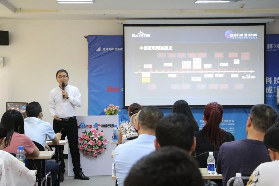 洛陽市青峰網(wǎng)絡(luò)科技有限公司百度推廣運營總監(jiān)張浩陽先生發(fā)表主題演講,以一張中國互聯(lián)網(wǎng)發(fā)展史的圖片切入,講解了以智能技術(shù)為核心的新形勢下,洛陽的企業(yè)家究竟怎樣讓自己的品牌迅速突出,怎么去選擇性價比更高的商業(yè)解決方案來助力自己的成功。