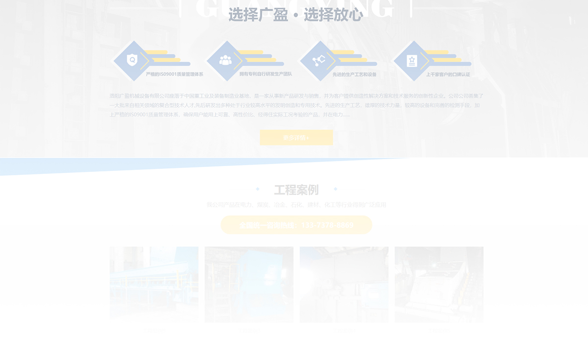 訪問(wèn)網(wǎng)站 VISIT SITE洛陽(yáng)廣盈機(jī)械設(shè)備有限公司座落于中國(guó)重工業(yè)及裝備制造業(yè)基地,是一家從事新產(chǎn)品研發(fā)與銷售,并為客戶提供創(chuàng)造性解決方案和技術(shù)服務(wù)的創(chuàng)新性企業(yè)